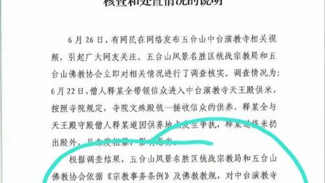 7月2日,五台山寺庙一僧人将香客贡米扔出殿外一事终于迎来了大😅结局。这件事情在网上已经持续发酵了多天,眼看着不给个说法是过⭐不去的。当然,7月1日,又有一名僧人在网上发布言论称,天王殿🙄的这名黄衣僧人是他的师傅,他…