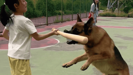 吃瓜电子官网最新热点:小女孩跟德牧玩棒球,狗子抢球,小女孩一棒子抡到了狗嘴上。