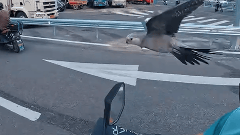 男子的宠物鹦鹉会跟车飞行。网友:侦察僚机