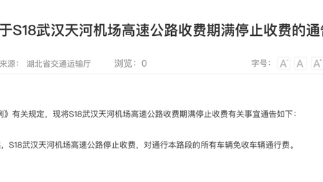 湖北省交通运输厅发布最新通告自2025年6月19日0时起收费💯期满将停止收费所有车辆免收车辆通行费于2014年通车的武汉天😎河机场二通道(高速公路编号:S19),仍按正常收费通行。来源👏丨湖北省交通运输厅编辑丨庹云…
