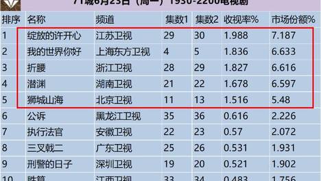 吃瓜电子官网最新热点:电视剧收视率排行榜,潜渊跌出前三,第一收视高达1.988%