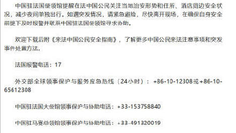 中国驻法国大使馆23日发布关于近期法国安全局势的领事提醒:据👍法国媒体近日报道,利摩日(Limoges)、贡比涅(Comp😅iègne)、尼姆(Nîmes)、贝济耶(Béziers)等🙌城市发生有组织的夜间暴力事件…