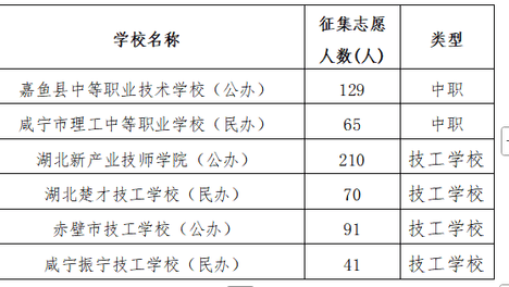 2025年咸宁市中职和技工学校征集志愿公告