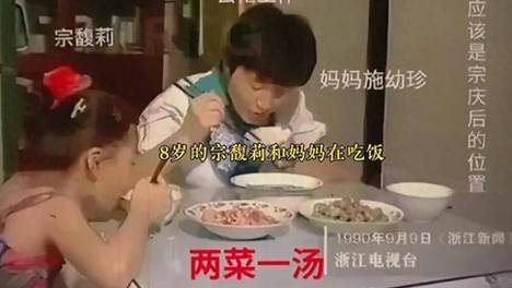 1990年,娃哈哈年产值过亿,8岁的宗馥莉和妈妈在家吃晚饭被采访