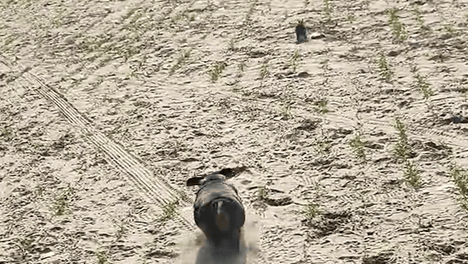 男子家的狗子由于太胖追不上兔子。兔子:嘬嘬嘬