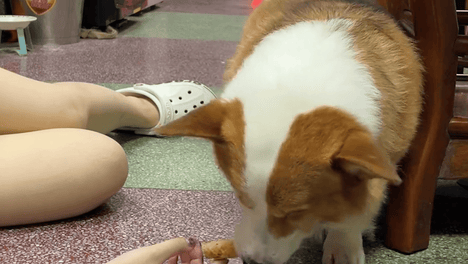 女子拿着蛋卷假装晕倒测试柯基反应。柯基:又抢救了一个晕倒的蛋卷