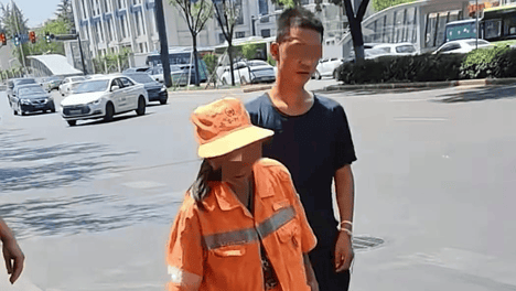 40度高温,西安一环卫工阿姨一根绳子牵着三十几岁有智力障碍的儿子打扫卫生,看哭网友