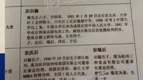 宗庆后家族族谱曝光!私生子一个没入册,只承认宗馥莉一个女儿!