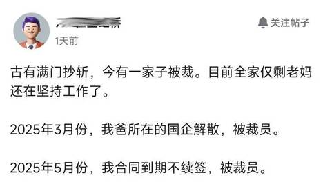 “满门被裁”,一家四口仅剩老妈还有工作了