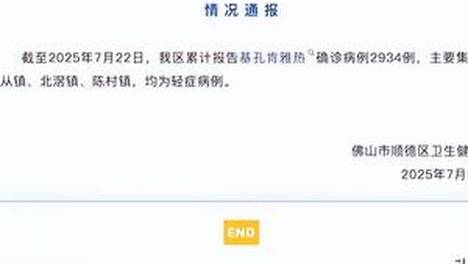 根据广东省佛山市顺德区卫生健康局7月23日的通报,截至202🤔5年7月22日,该区累计报告基孔肯雅热确诊病例2934例,主😁要集中在乐从镇、北滘镇、陈村镇,均为轻症病例。一篇发表在《疾😡病监测》杂志上题为《2010…