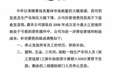 太大气了!网传江苏一洁具企业面临亏损的恶性循环,不裁员不降薪